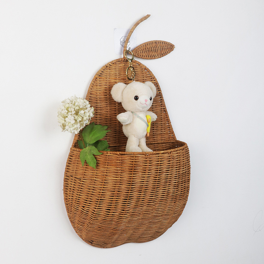 Natural rattan wall-mounted apple fruit shape storage basket hand-woven apple pear storage basket wall storage rack