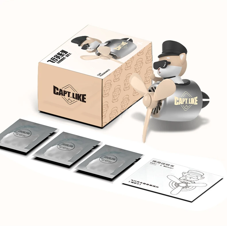 Pilot Bear Car Air Freshener Clip with Propeller Design