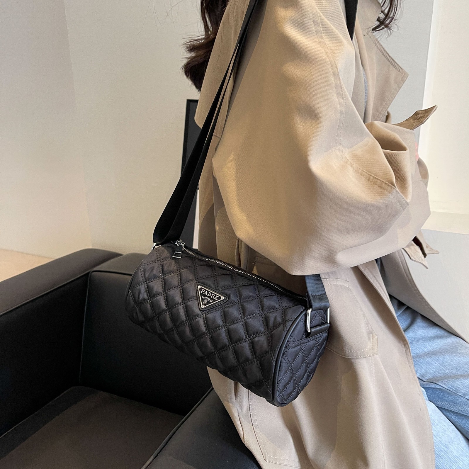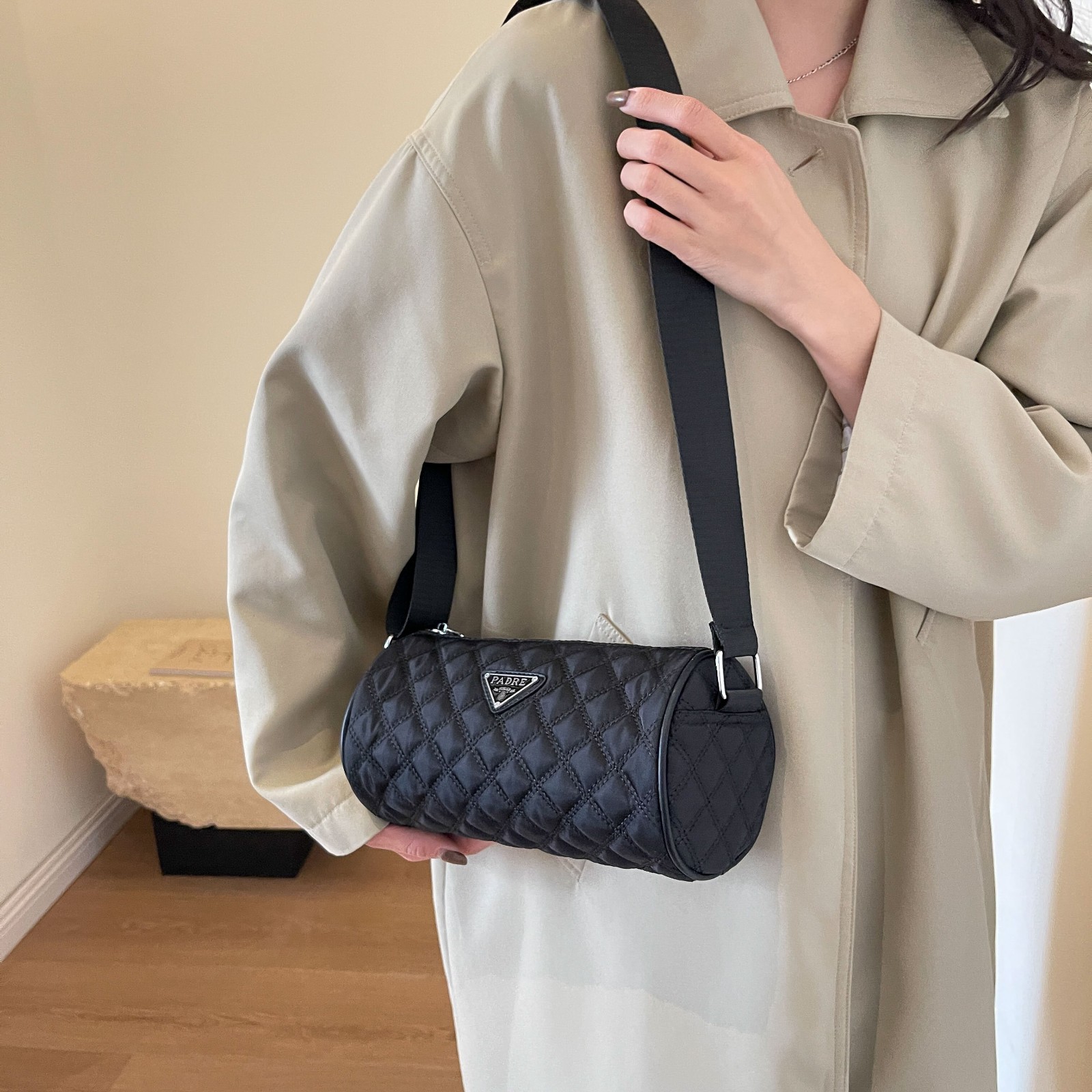 Oxford cloth cylinder crossbody bag women’s horizontal version niche pillow fashionable and versatile large capacity bucket bag crossbody shoulder bag