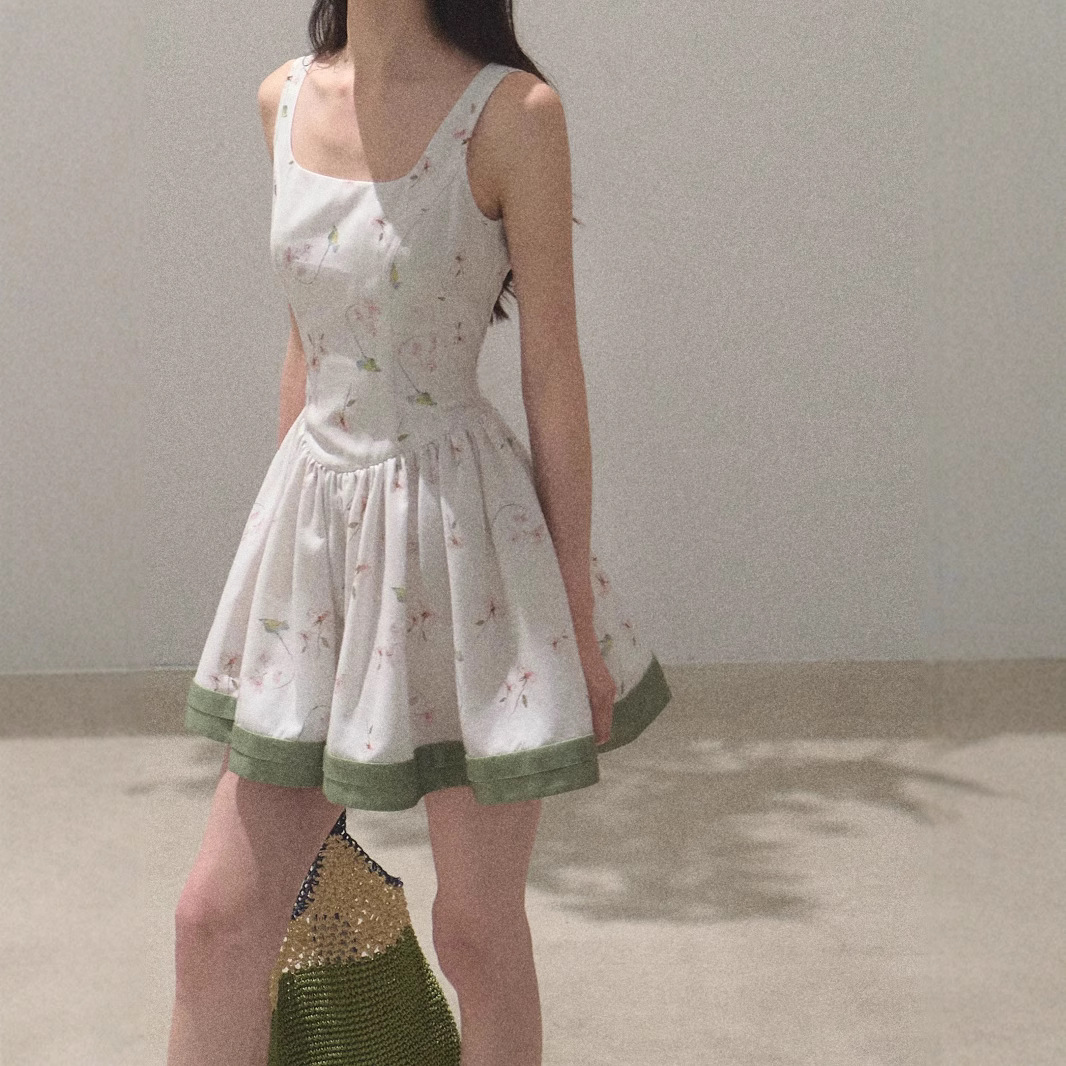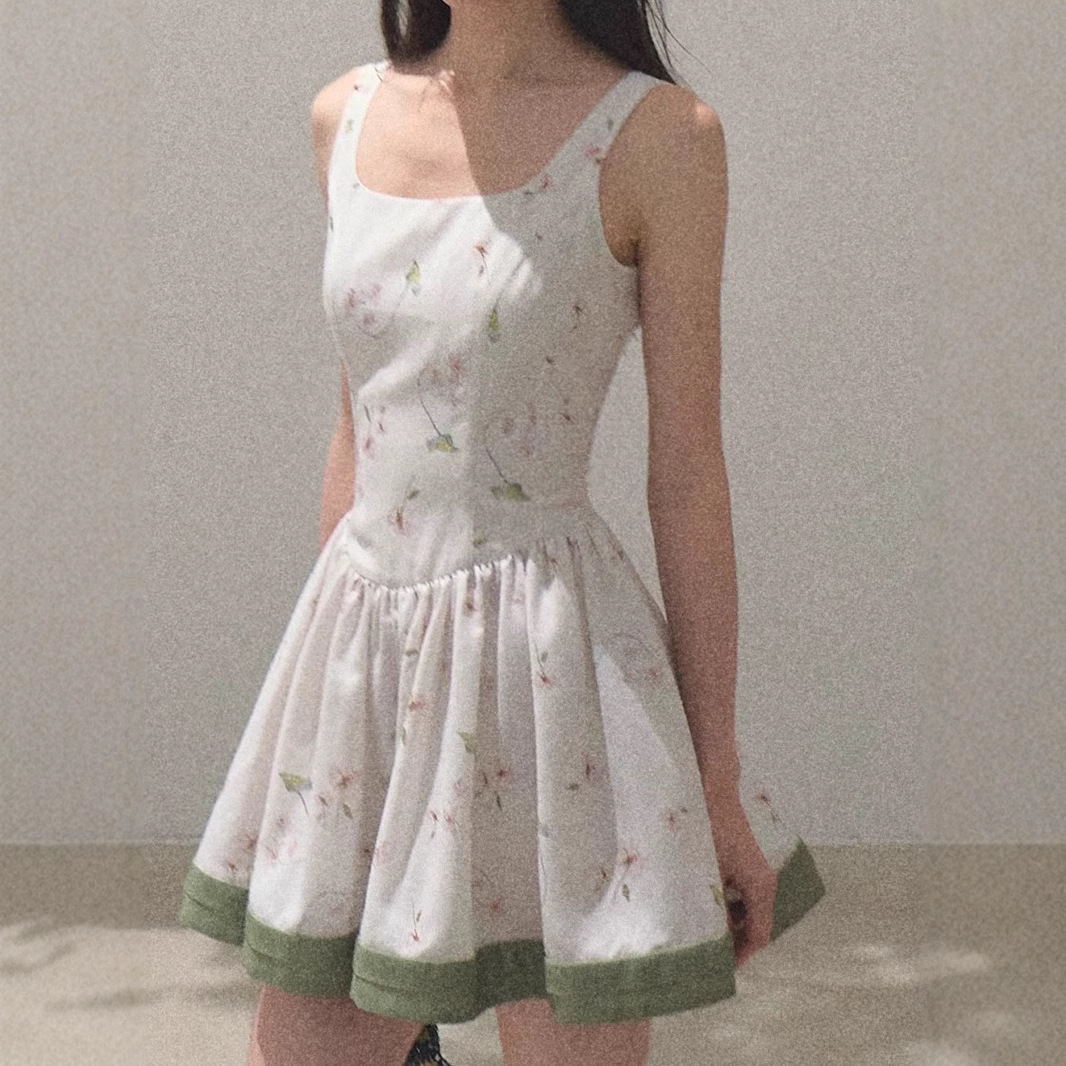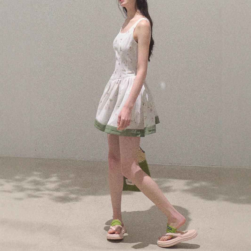 / “Picnic Note” Tencel Linen Spring Texture Relaxation Print Slim Pure Vest Dress