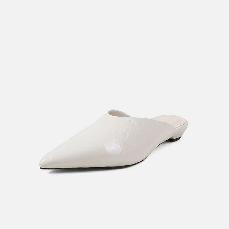 Pointed soft leather low heel comfortable lazy half slippers summer simple temperament sandals fairy style high heels