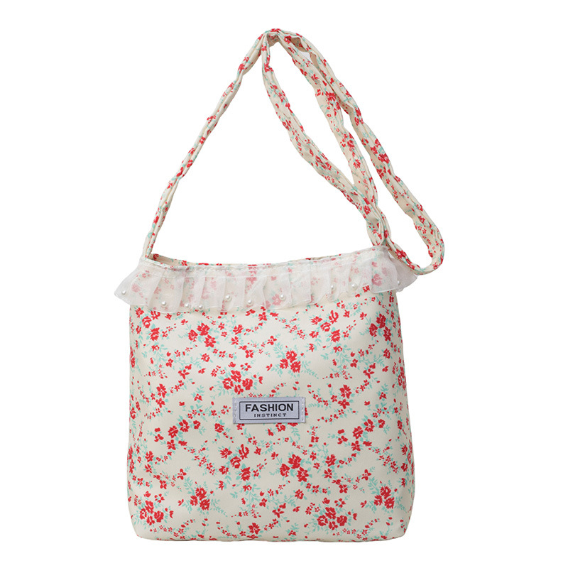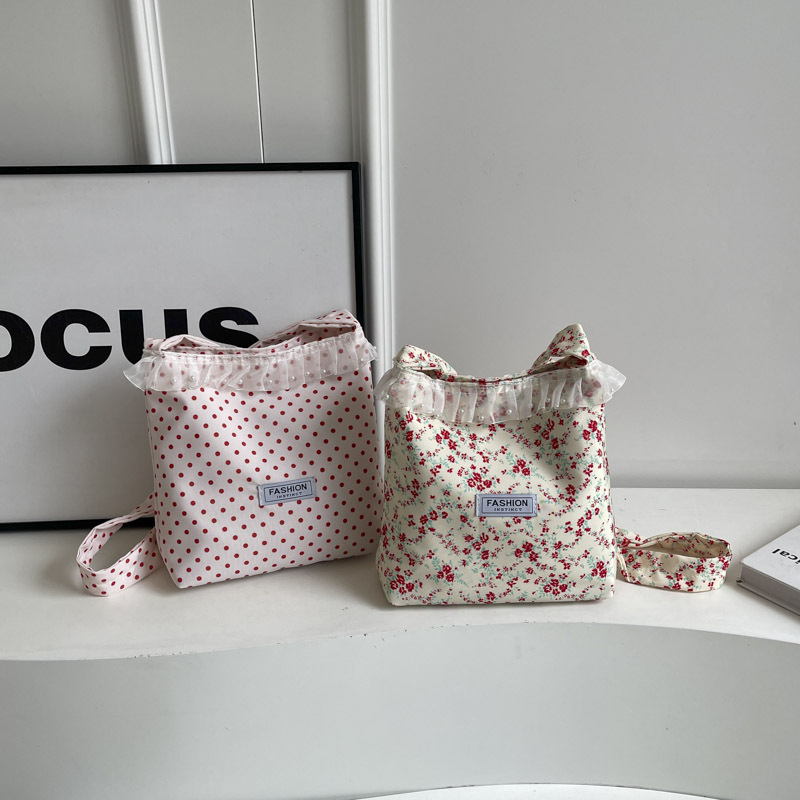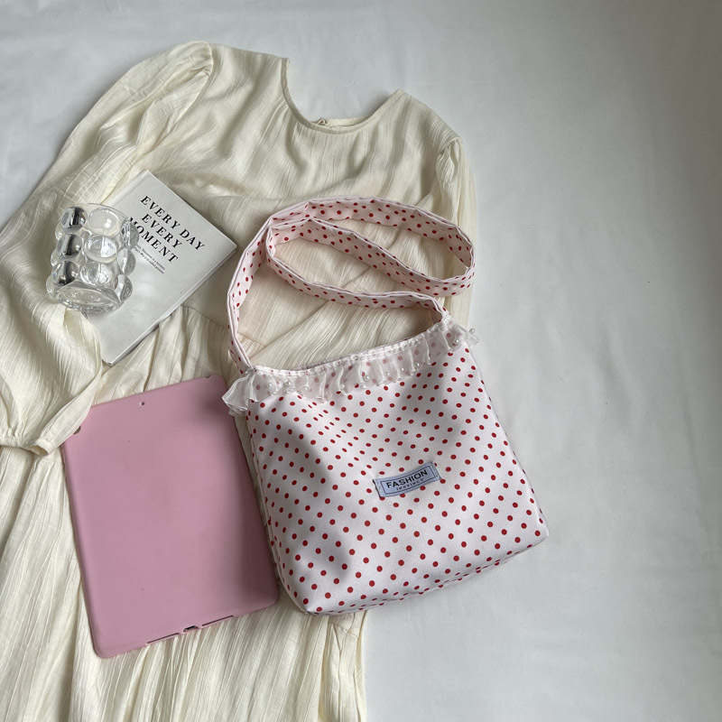 Polka dot lace canvas bag for women single shoulder large capacity tote bag for students class commuting bag