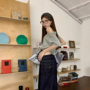 Real-life photo of loose and slimming water washing blue-padded floor jeans for women casual and versatile wide-leg pants