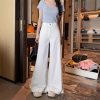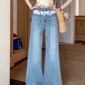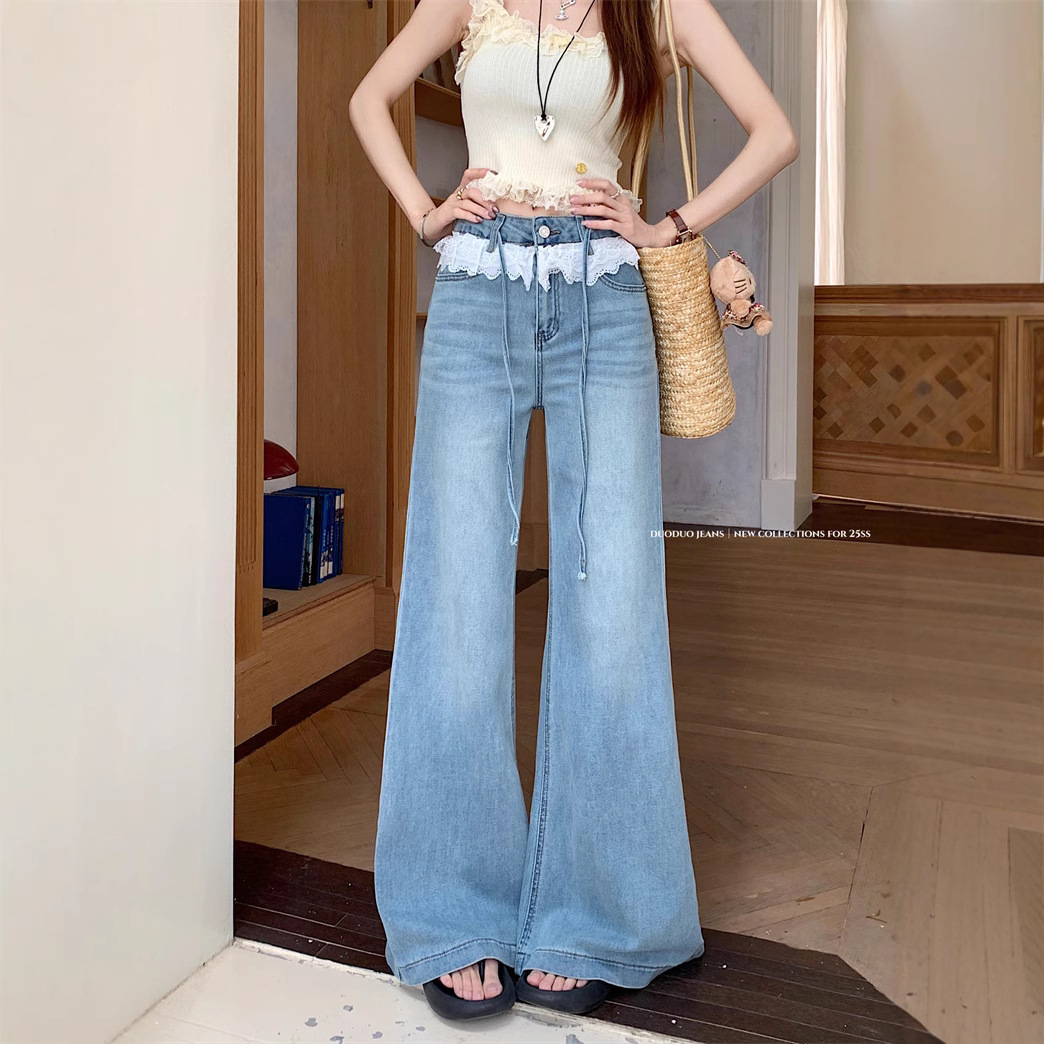 Real photo of lace lace design and slightly flare jeans for women in summer high waist without legs loose wide-leg trousers