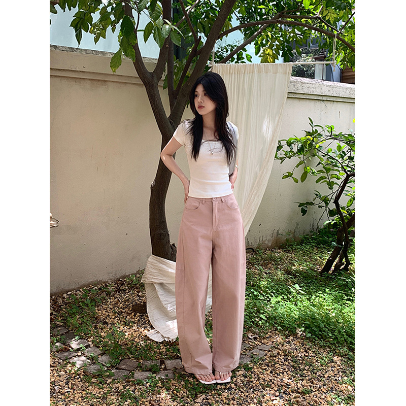 Real photo of pink wide-version scimitar trousers summer loose casual wide-leg work pants pink pants