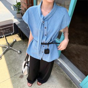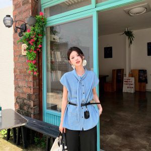 Real photos of Korean loose casual shirts in summer in women’s design and slim tops