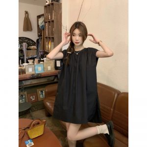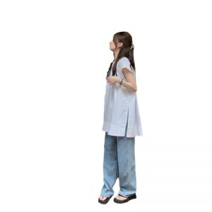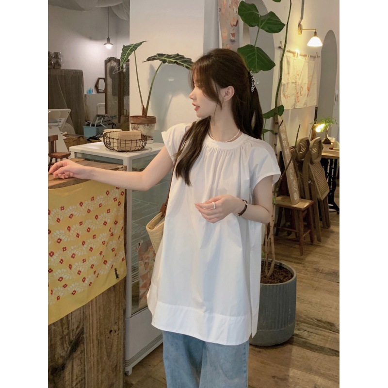 Real shot of summer French retro simple white loose temperament niche sleeveless slit shirt women’s top