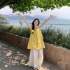 Real shot of summer necklace, lace-up, blue striped fake two-piece short-sleeved shirt