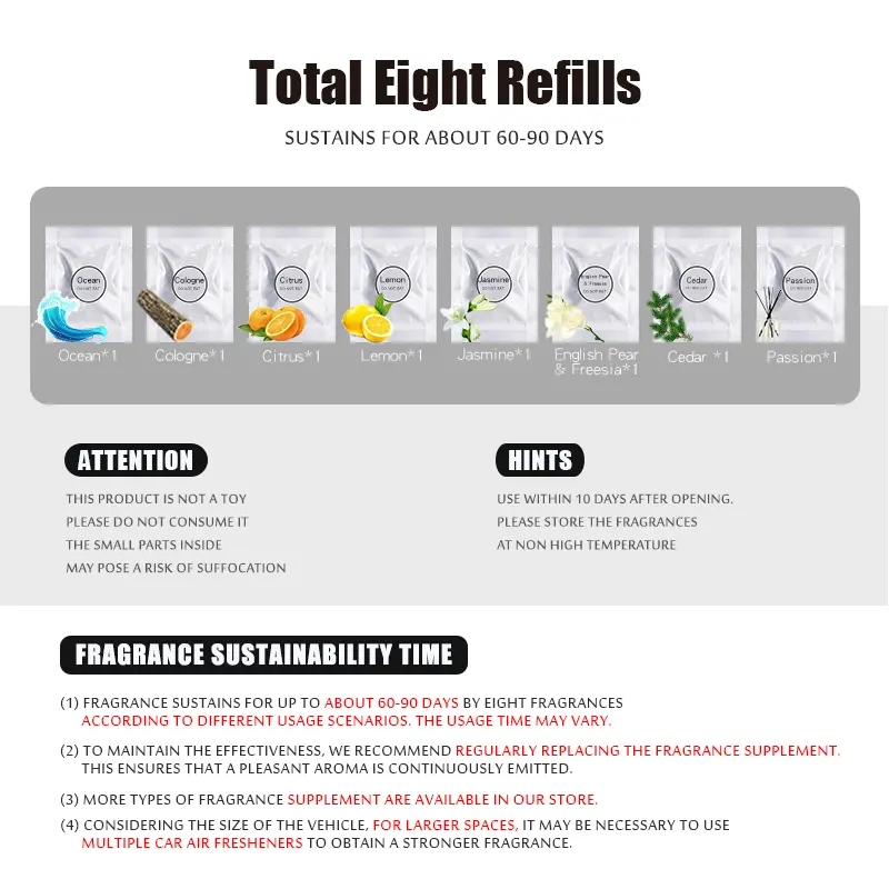 Double Ring Rotating Auto Fragrance Diffuser Portable Kinetic Molecular Heaters for Car Living Rooms Bathrooms Features: 1. Efficient Heating Solution: