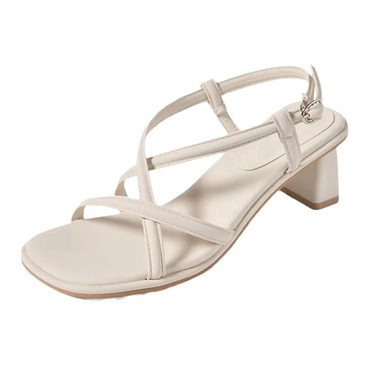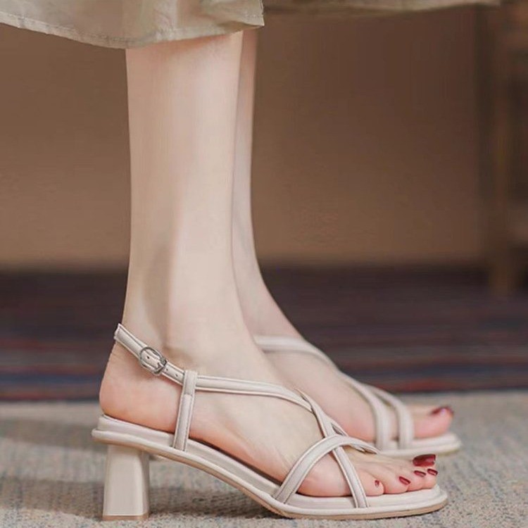 Sandals for women wearing summer soft sole mid-heel simple temperament with skirt thick heel French high heels