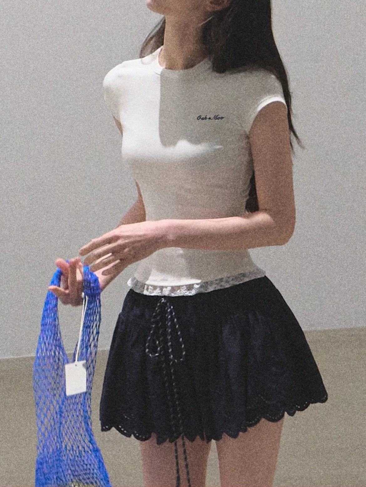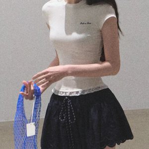 / “See yourself to make peace” Lace skin-friendly, antibacterial slimming tight short-sleeved shirt top