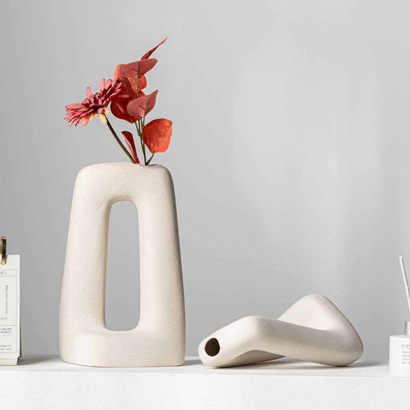 Simple large shorts in a floral high-end white ceramic vase matte craft decorative ornament