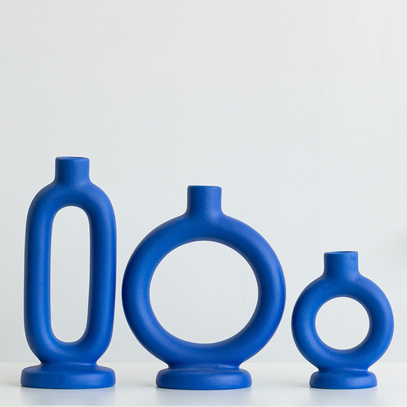 Simple light luxury Klein blue ceramic candlestick atmosphere ornaments decorate Meiju craft ornaments