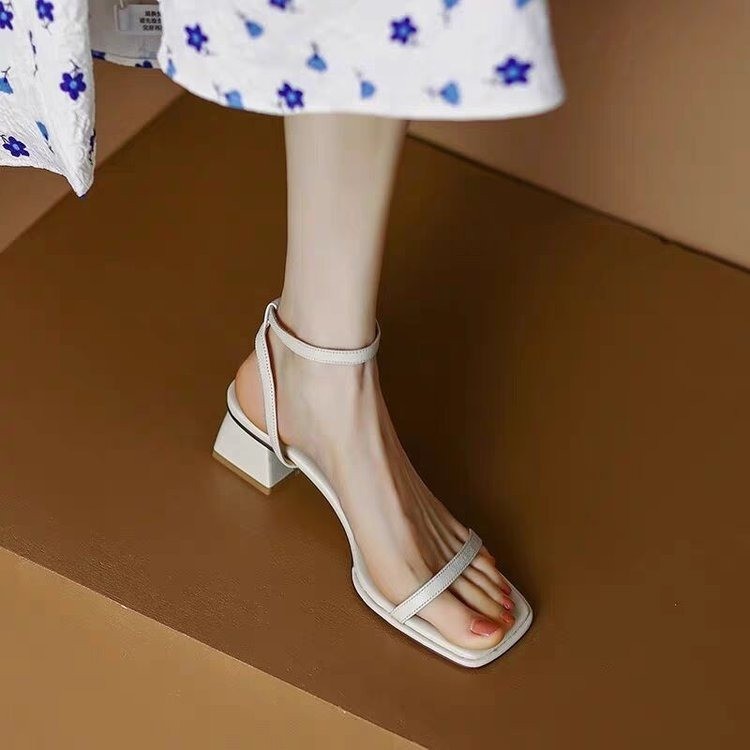 Simple thick heel cross-belt open-toed sandals for women in summer soft leather waterproof platform one-liner simple silver high heels