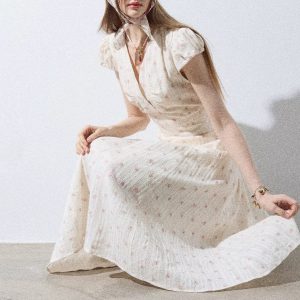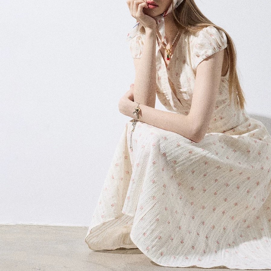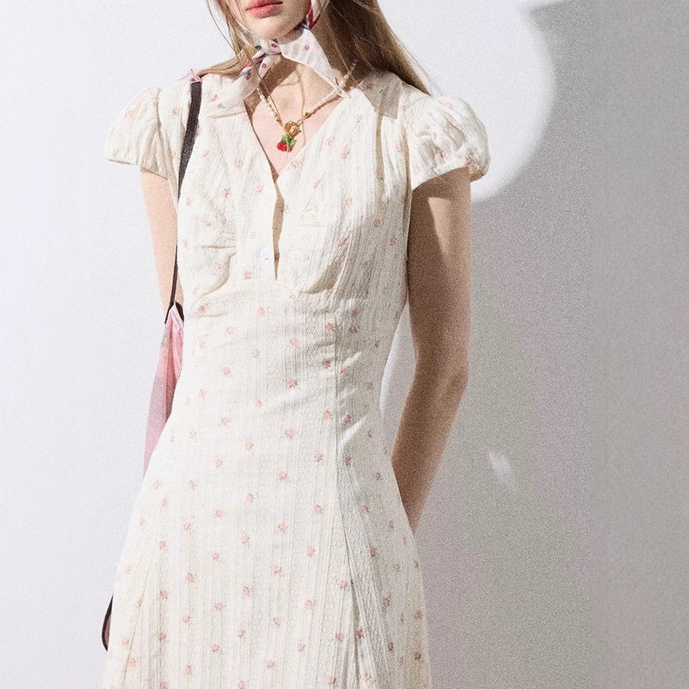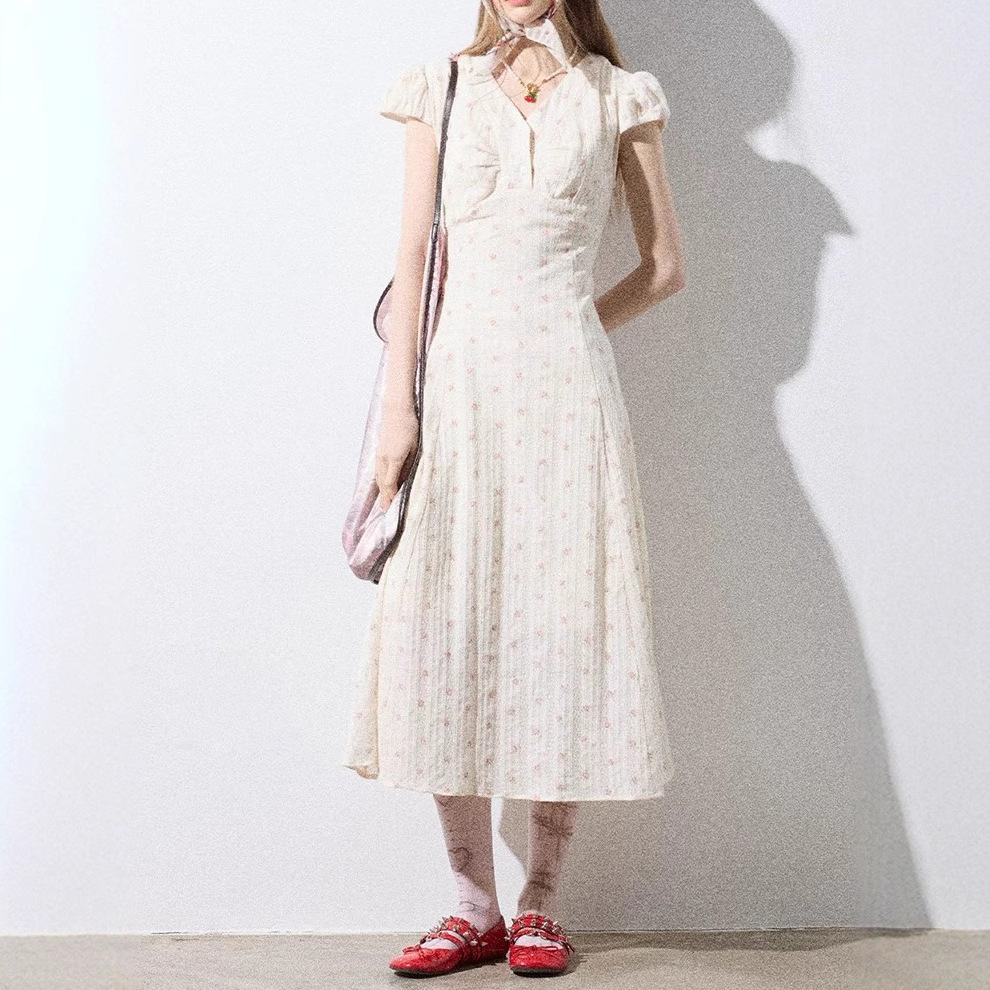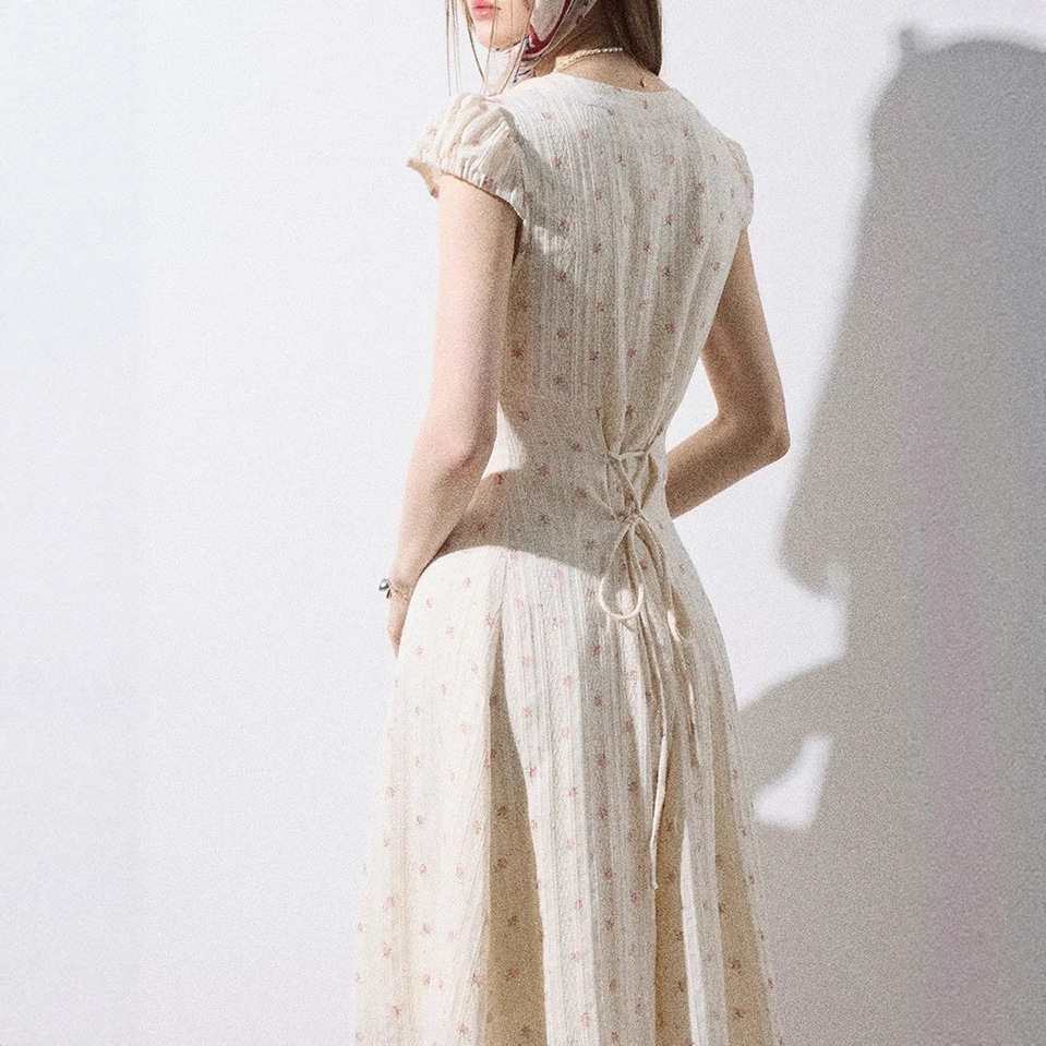 Southern France midsummer floral dress for women in summer pastoral vacation style short-sleeved long dress