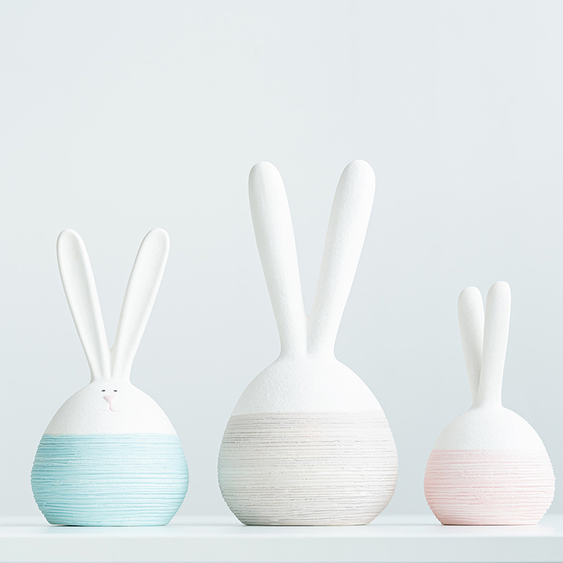 Style matte ceramic modern simple circle desktop home cute rabbit ornaments