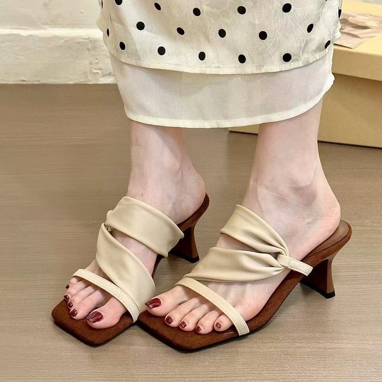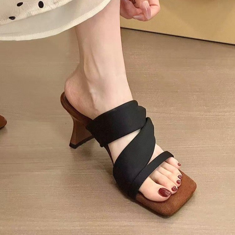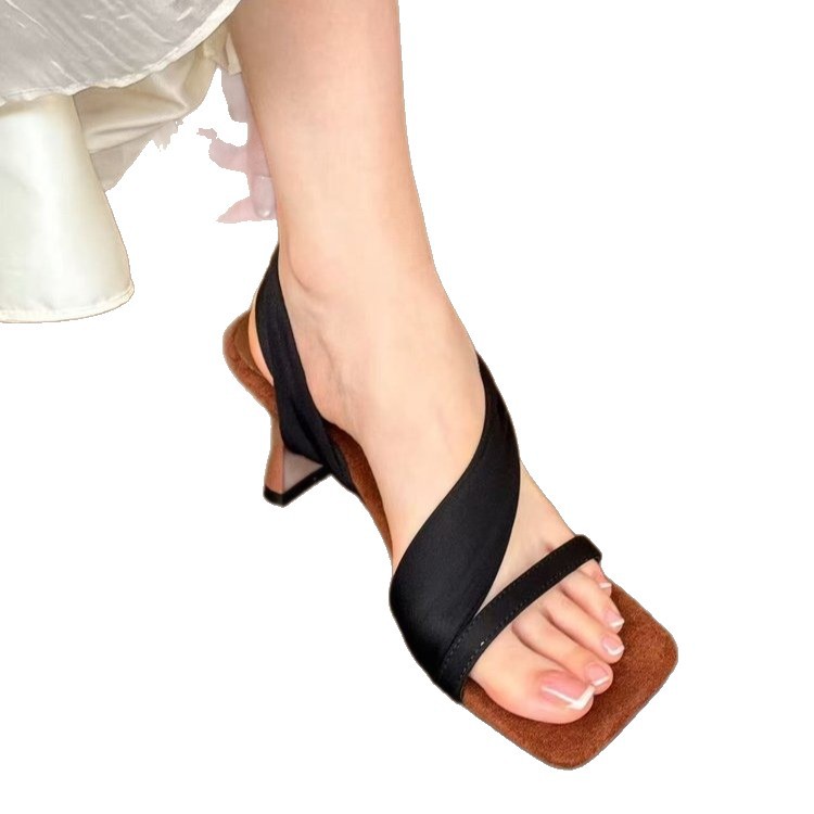 Summer French sandals for women’s fashionable square toe open-toe high-heeled sandals for wearing high-end shoes