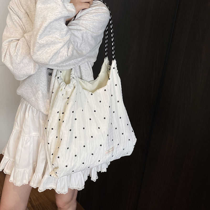 Summer mesh drawstring bag large capacity chiffon shoulder bag fresh little flower fairy vacation bag women commuting bag