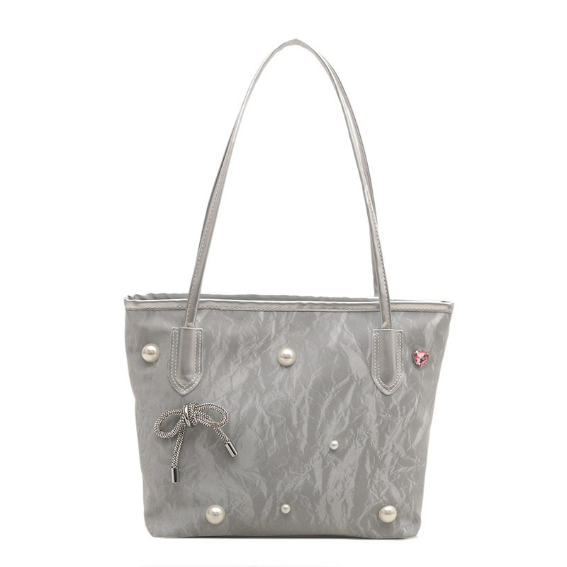 Textured large capacity bag for female college students in class shoulder bag niche design sense commuter tote bag
