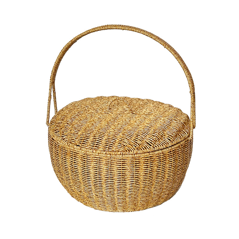 The God of Worshiping Basket Imitation Rattan Basket with Lid Wedding Festive Handheld Basket Hand-woven Picnic Basket Household Large Fruit Basket