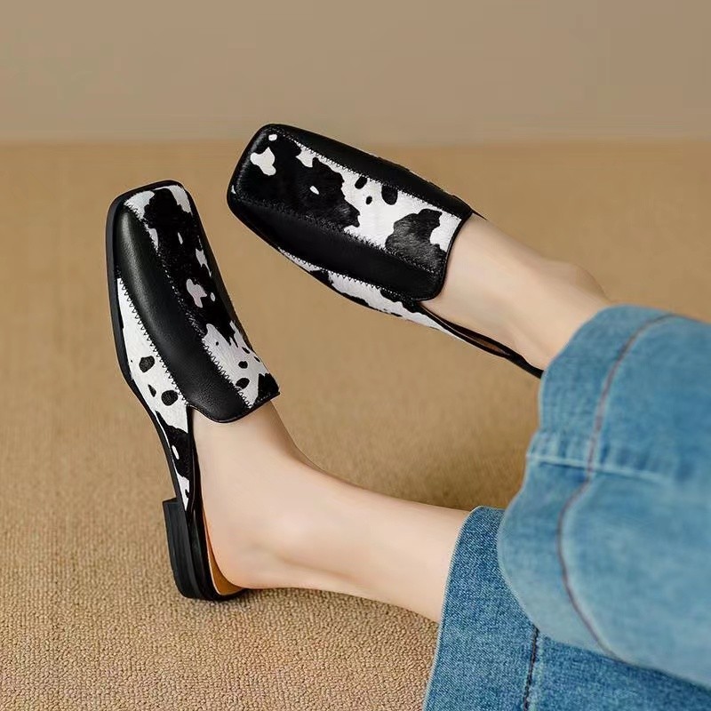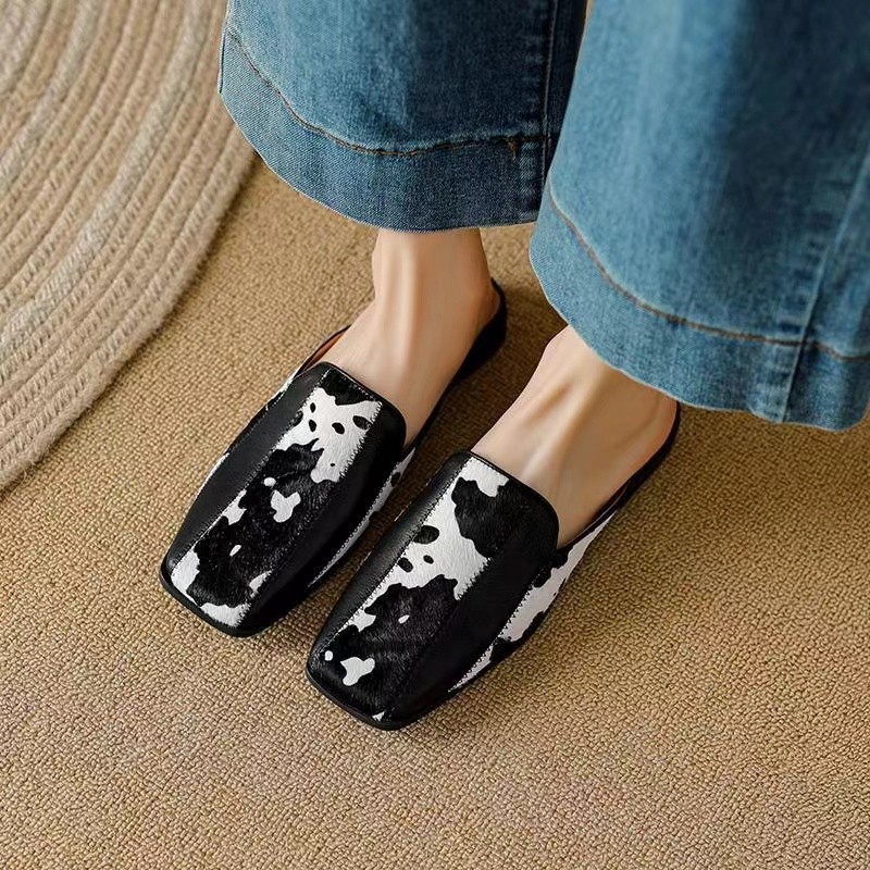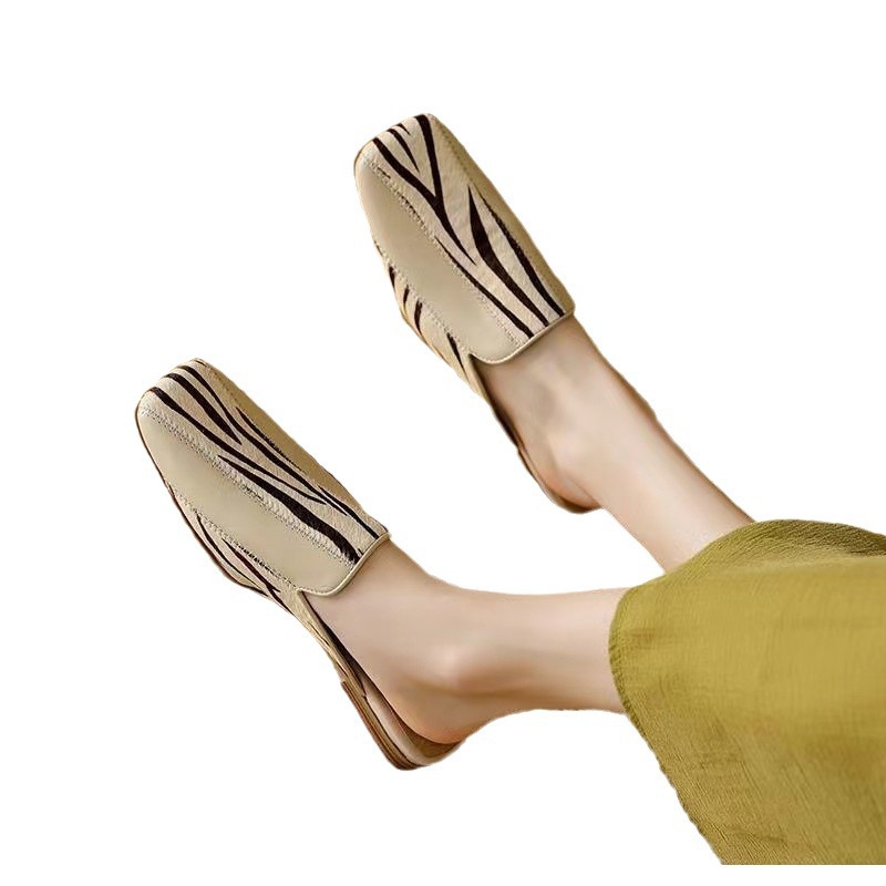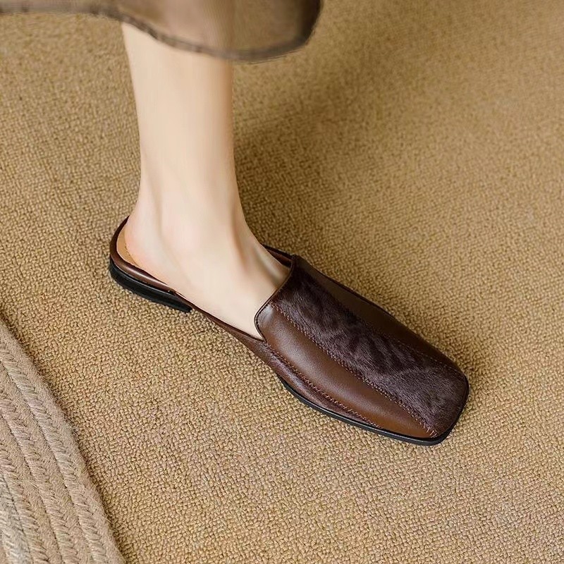 Wanziyan spring and summer color-blocking bag-toe lazy square-toe thick heel half-slippers for women wearing fashionable mules outside