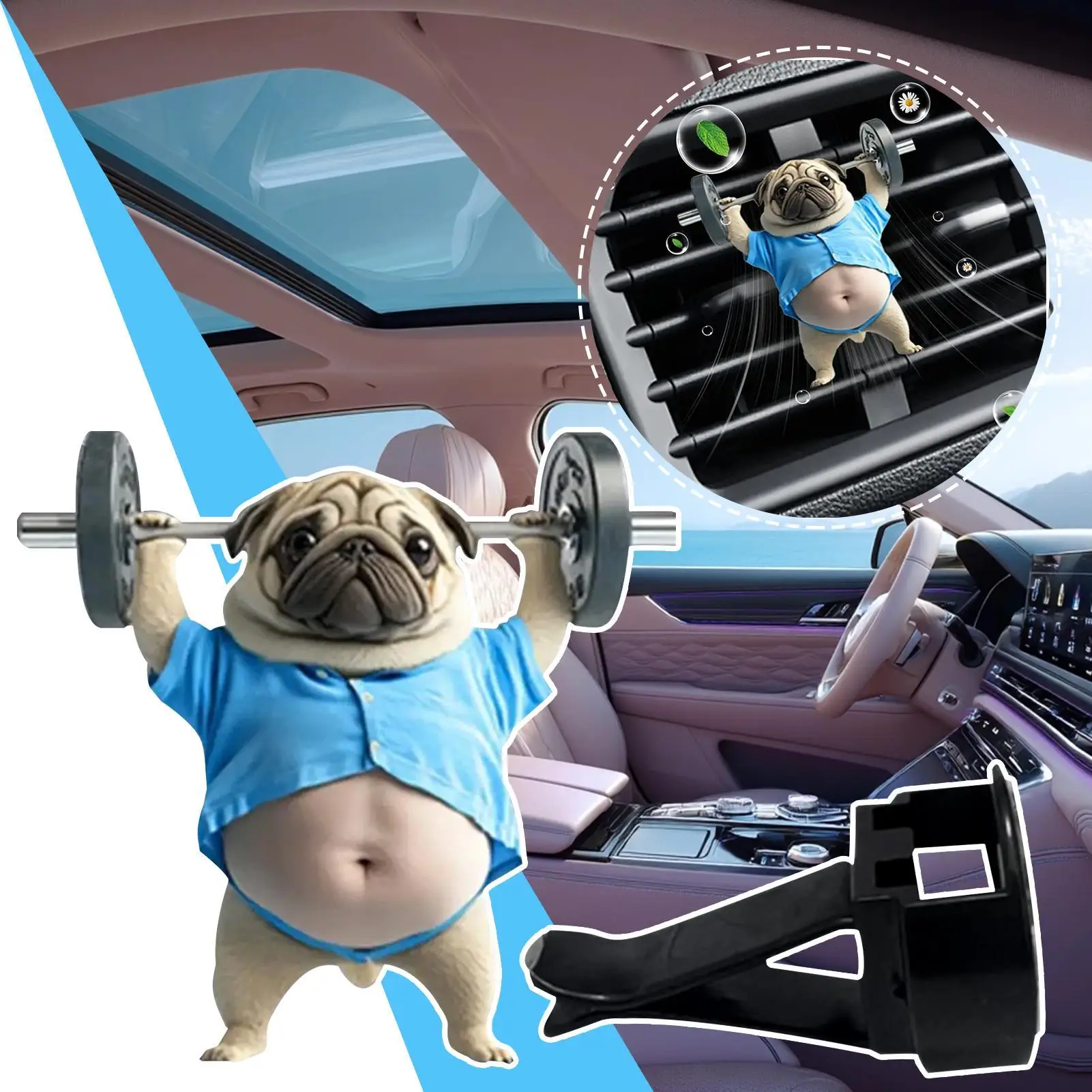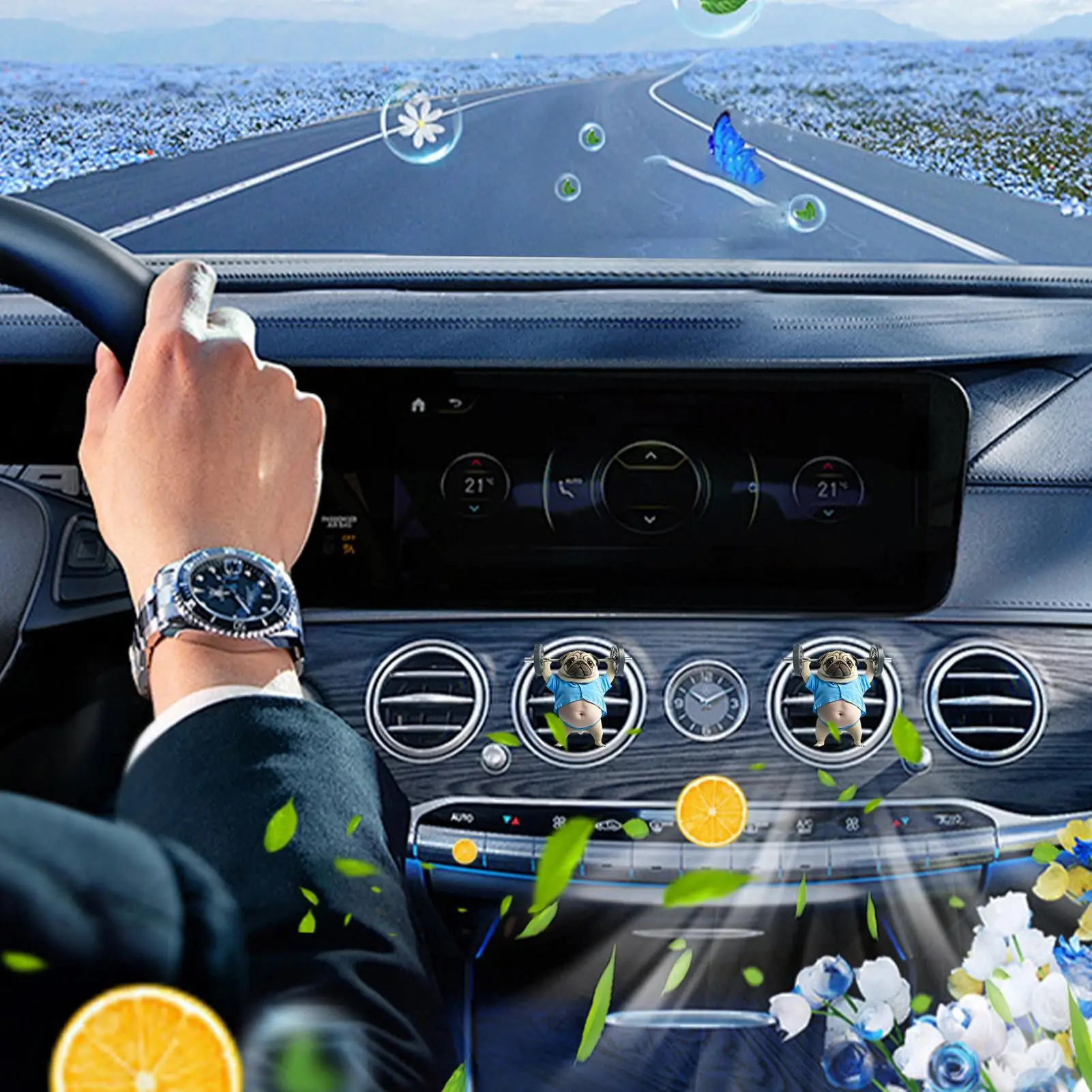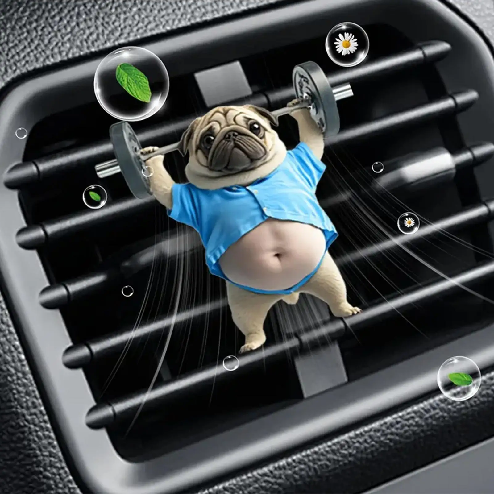 Pug Lifting Weights Car Vent Air Freshener for Aromatherapy