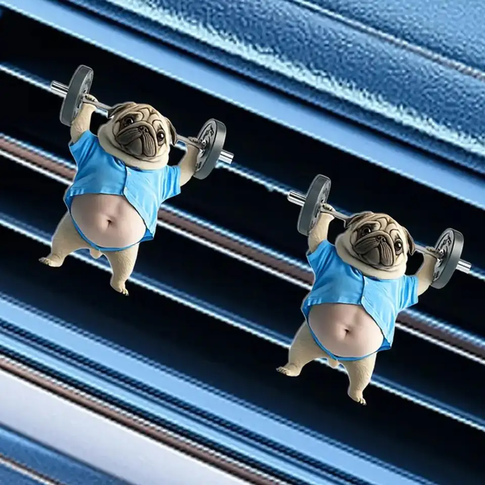 Pug Lifting Weights Car Vent Air Freshener for Aromatherapy