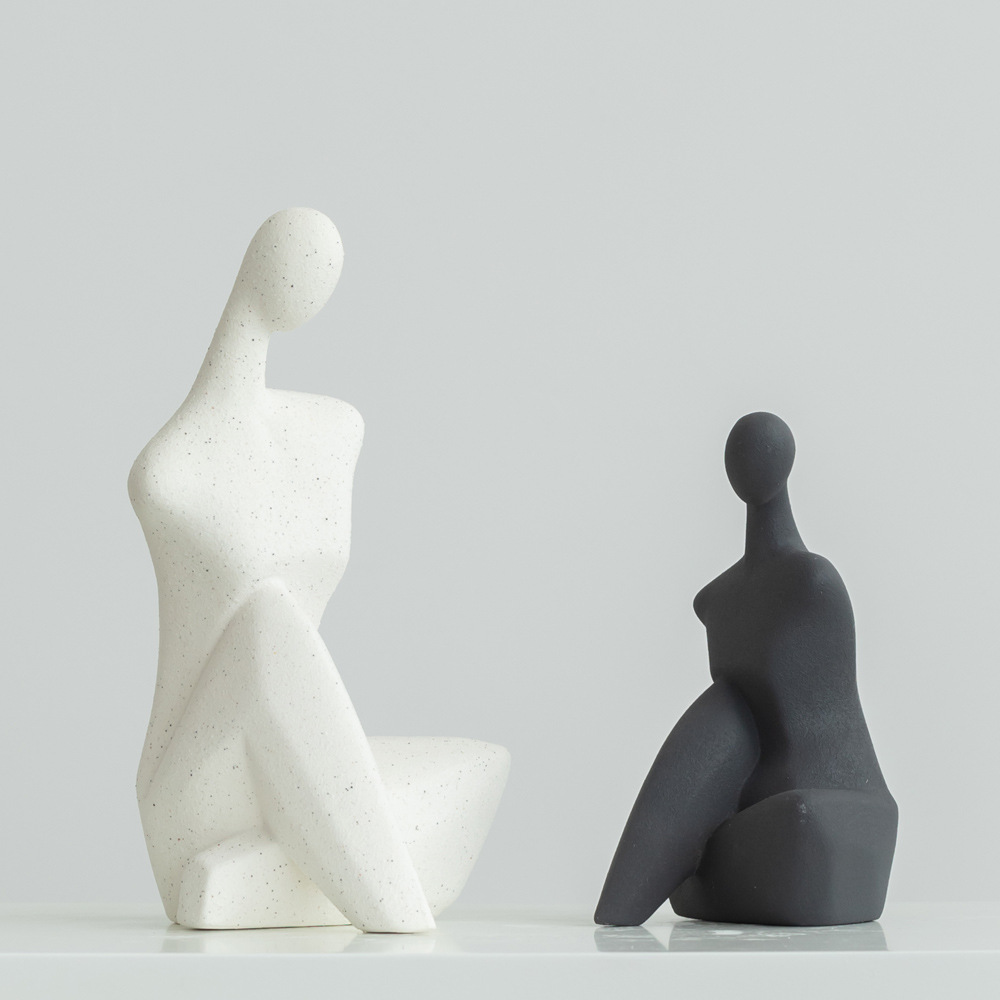 Wind sitting portrait spray black and white home decoration ceramic craft figures
