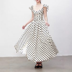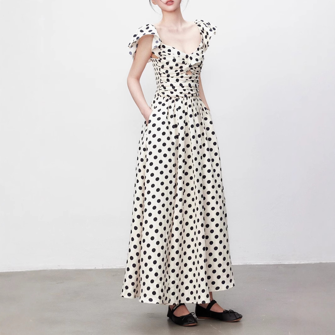 Yuzhi high-end polka dot dress summer pleated waist-hugging long skirt to make you look slim and elegant
