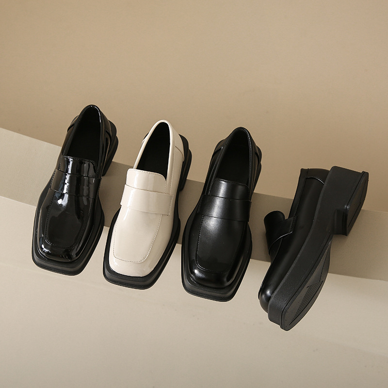 Thick-soled spring and autumn square toe retro shoes single shoes women’s shoes spring white British style small leather shoes