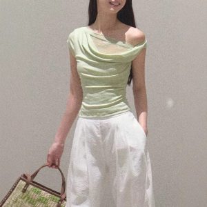/ “Season of Love” Pure Side-Shoulder Design Silhouette Knitted Top Shirt