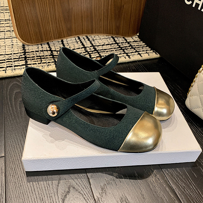 New Year’s little fragrant style color-blocking Mary Zhen shoes for women’s spring simple single shoes light mouth round toe flat shoes cute