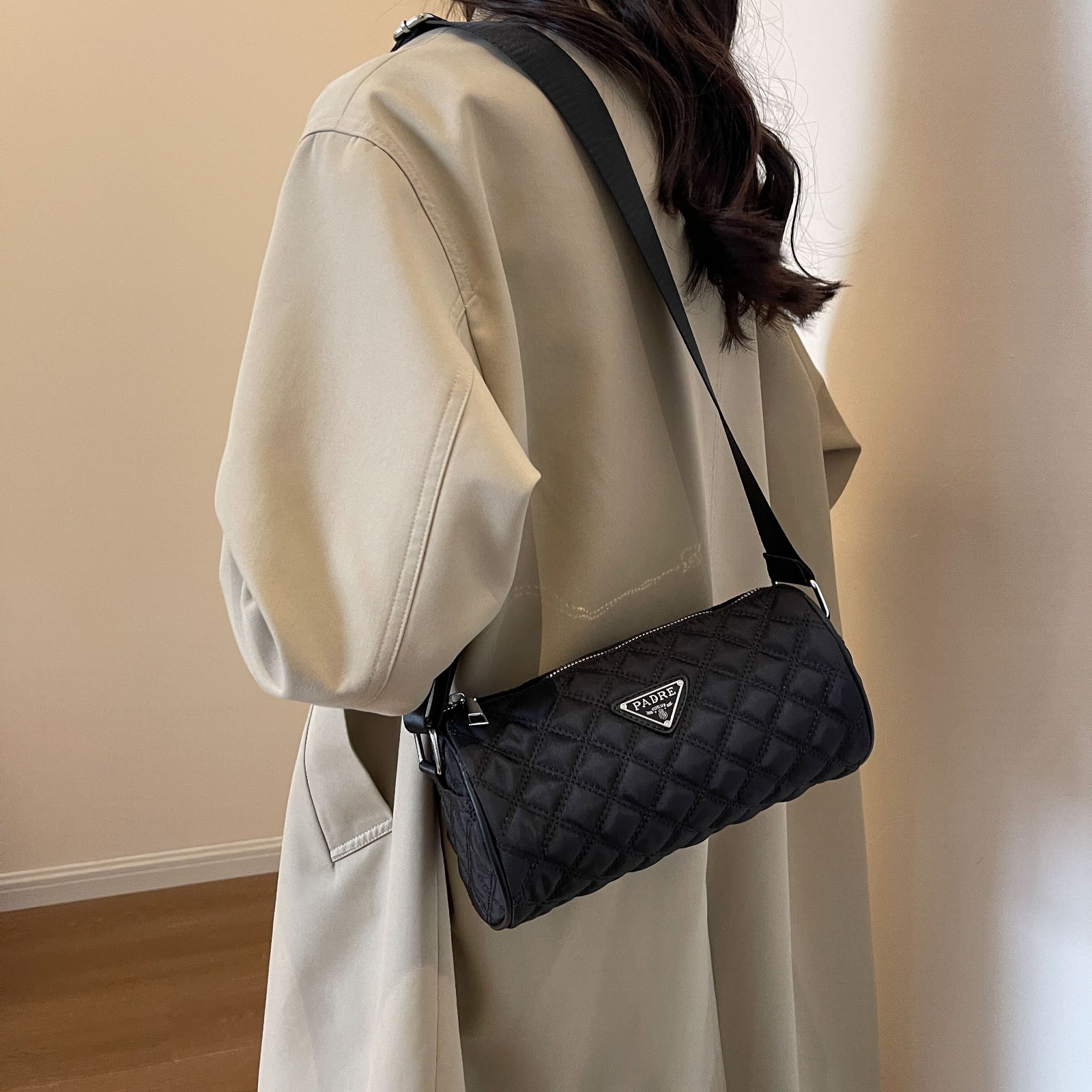 Oxford cloth cylinder crossbody bag women’s horizontal version niche pillow fashionable and versatile large capacity bucket bag crossbody shoulder bag