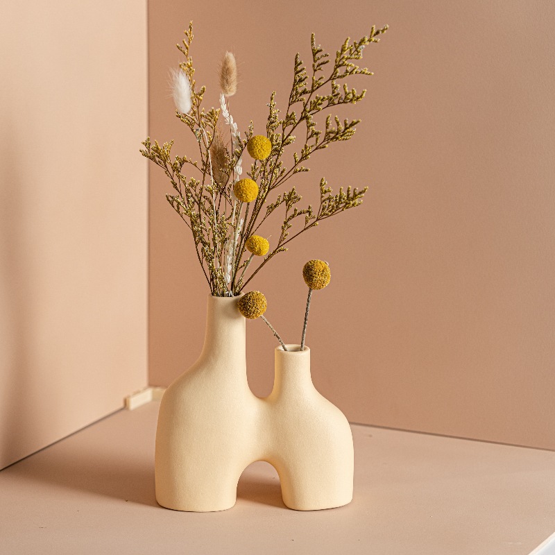 Daimon simple double mouth yellow flower arrangement ceramic vase light luxury home soft decoration